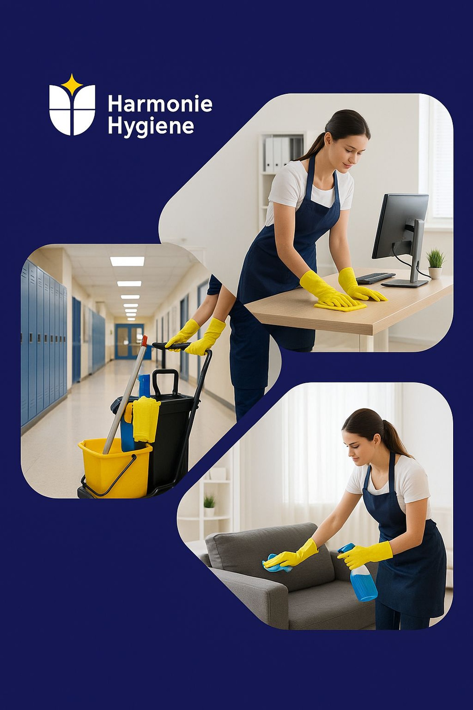Momentaufnahmen von Harmonie Hygiene in Aktion, die für makellose Pflege sorgen.